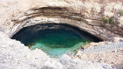 Nach dem Frühstück fahren Sie entlang der Küste Richtung Muscat. Weiter halten geht es zu Photo-Stopps im Wadi Tiwi und Wadi Shab. Geniessen Sie den Anblick dieser einzigartigen Wadis, deren Wasserläufe umgeben sind von einem Labyrinth aus großen Felsbrocken und Dattelpalmen. Ihr nächstes Etappenziel ist der spektakuläre Bimah-Krater, der mit leuchtend grünem Meerwasser angefüllt ist.